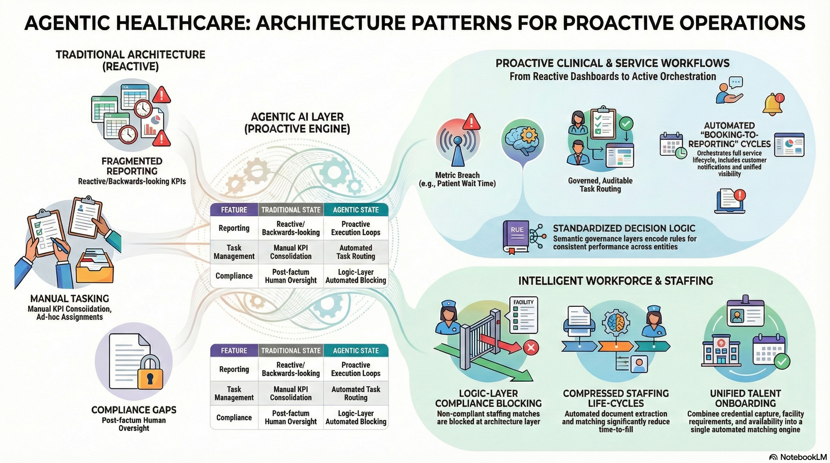 The semantic governance layer is what makes agentic AI deployable in clinical settings. It encodes the business and clinical rules that govern every decision the agent makes — not as probabilistic suggestions, but as deterministic logic.