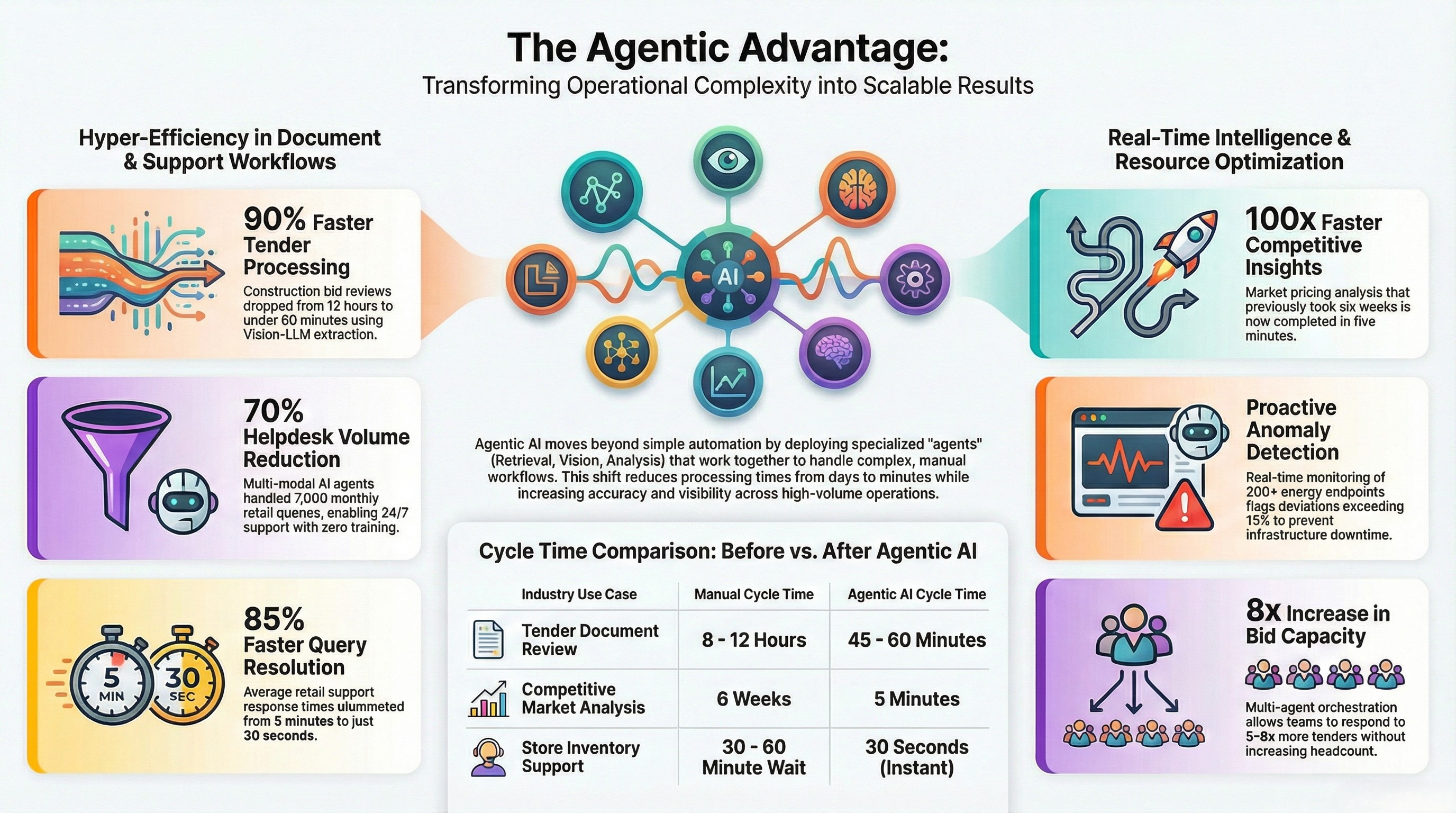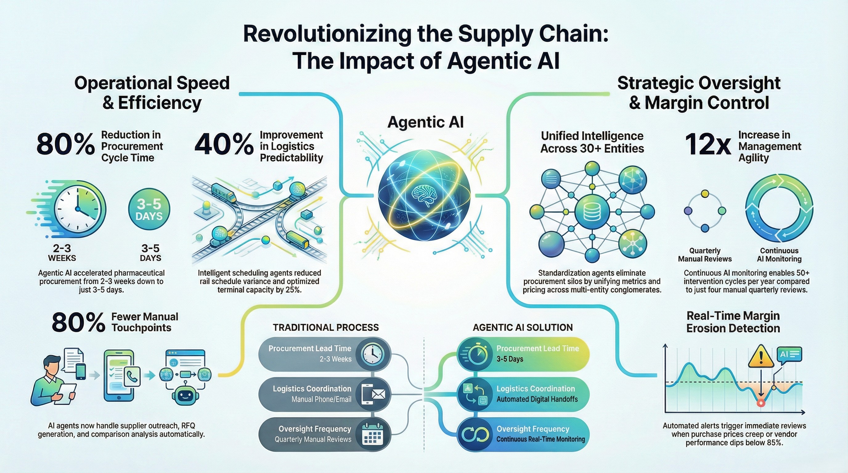 This is where agentic AI manufacturing platforms bridge the gap, and why early adopters are already seeing 40-60% reductions in process cycle times.