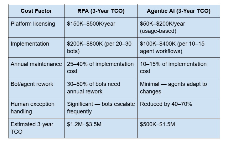 The Cost Equation: RPA vs. Agentic AI