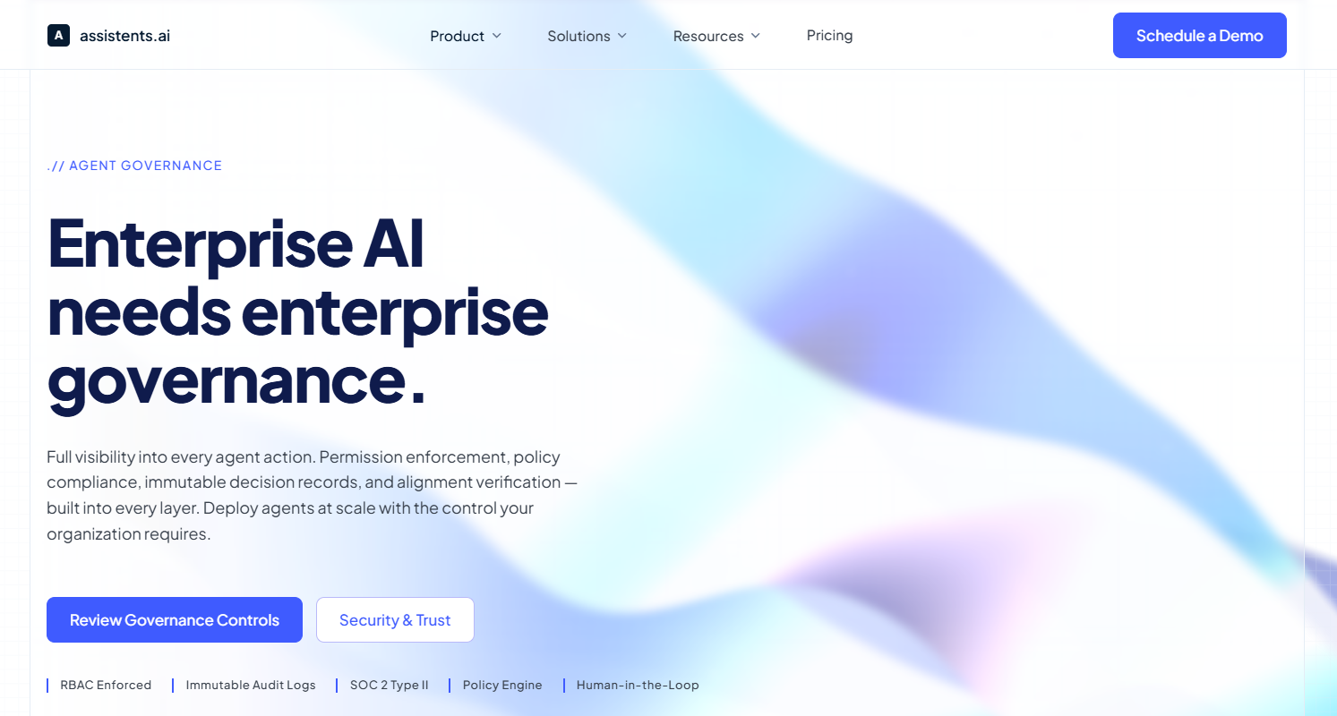 assistents.ai's governance layer maintains complete audit logs of every agent action, with rules-based exception routing that sends edge cases to human reviewers rather than executing autonomously. This architecture is not bolted on after deployment — it is a core design principle of the platform. Deployments across financial services, utilities, and real estate have specifically demonstrated this in regulated environments.