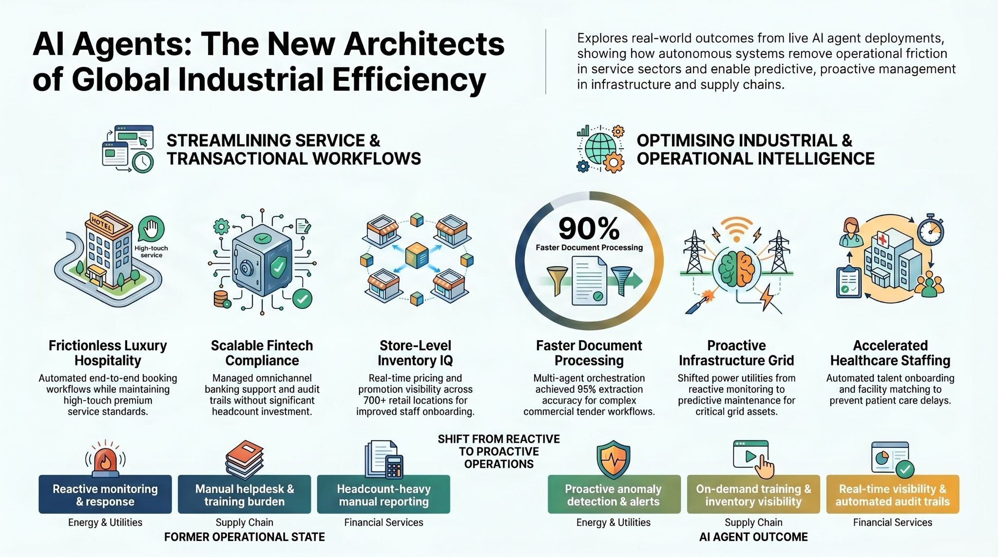 We have included real deployment outcomes across industries — from luxury hospitality to energy infrastructure to healthcare — drawn from live implementations. No theoretical use cases. No vendor promises. Just what is actually working, and what the numbers look like.
