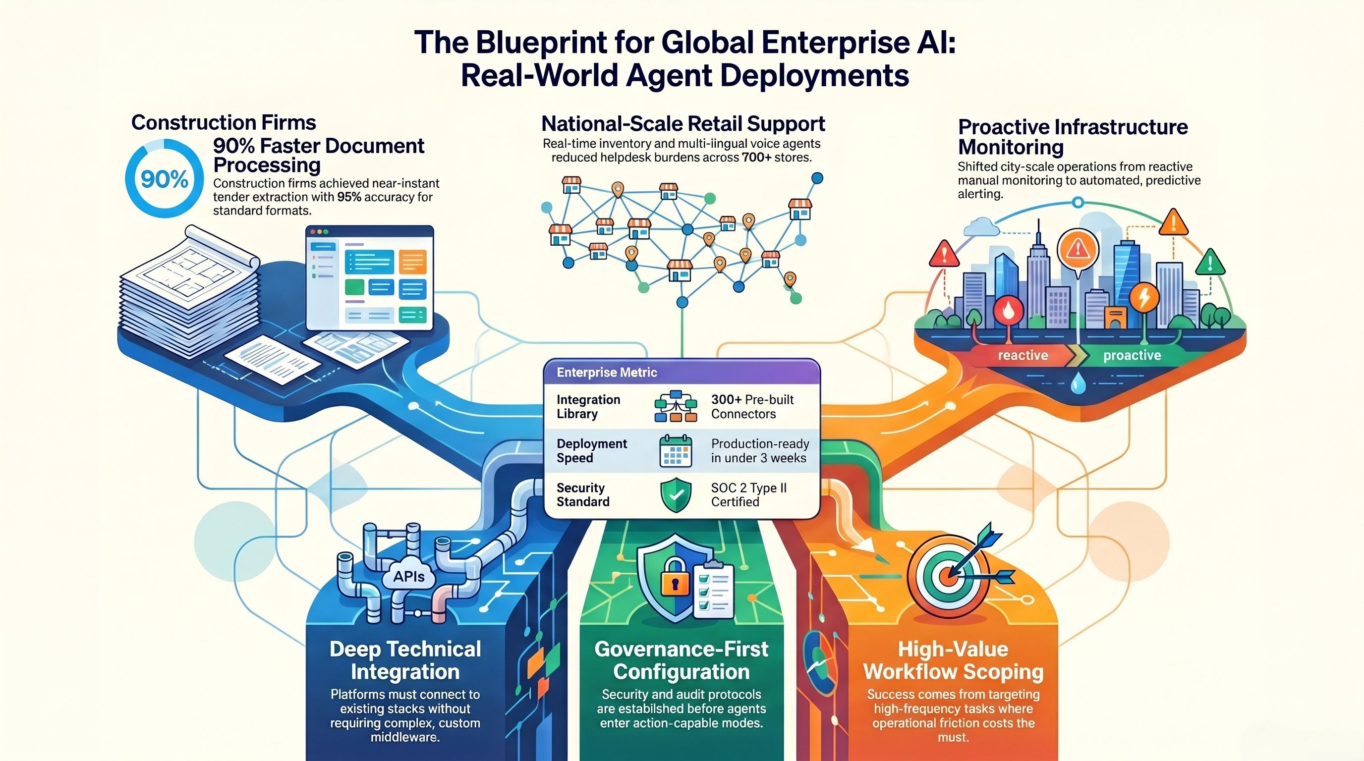 The pattern across all of them is consistent: the deployments that produced the fastest and largest measurable impact shared three characteristics. The platform connected deeply to the existing technology stack without requiring custom middleware. Governance was configured before agents went into action-capable mode. And the deployment was scoped to a high-frequency, high-value workflow — not the most impressive use case, but the one where operational friction was costing the organization the most time and money every week.