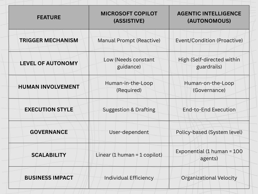 If Copilot is an intern you have to micro-manage, Agentic Intelligence is a seasoned employee you trust to get the job done.